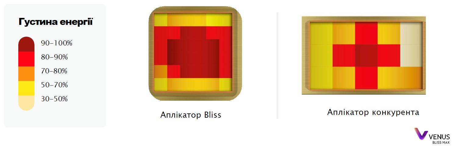 Розподіл енергії Venus Bliss MAX vs конкурент