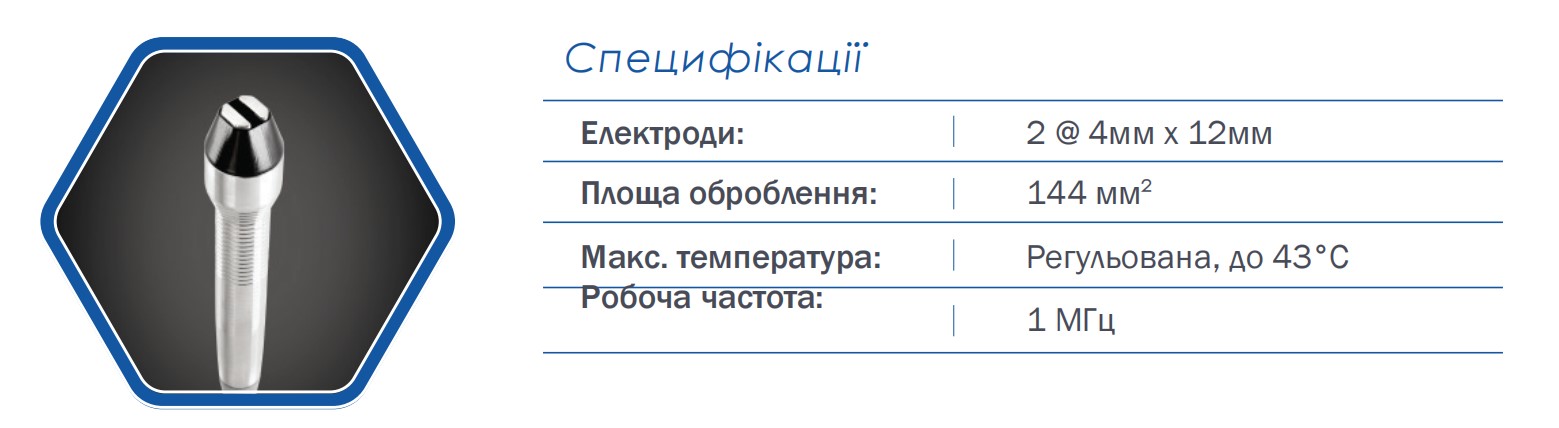 - Регульована глибина проникнення голки/електродів із допомогою програмування до 6 мм