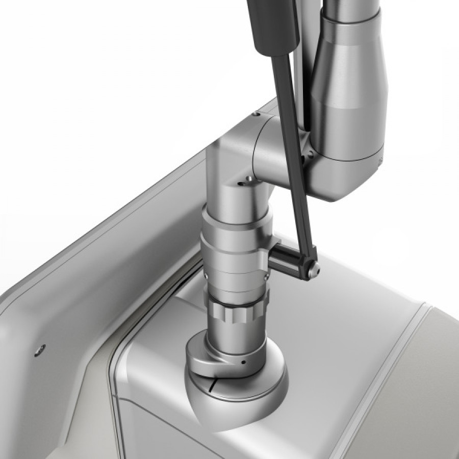 Лазер CO2 RE для фракційного омолодження шкіри дає можливість одночасно впливати на поверхневі та глибокі шари шкіри, контролюючи інтенсивність, схему та глибину впливу. Промінь фракційного лазера з довжиною хвилі 10600 nm подається за допомогою шарнірного кронштейна за допомогою дзеркал, що складаються, в потрібне місце, і потрапляє на шкіру пацієнта, проникаючи в заданій ділянці на потрібну глибину з необхідною енергією, що контролюється двовимірним сканером.