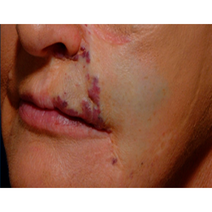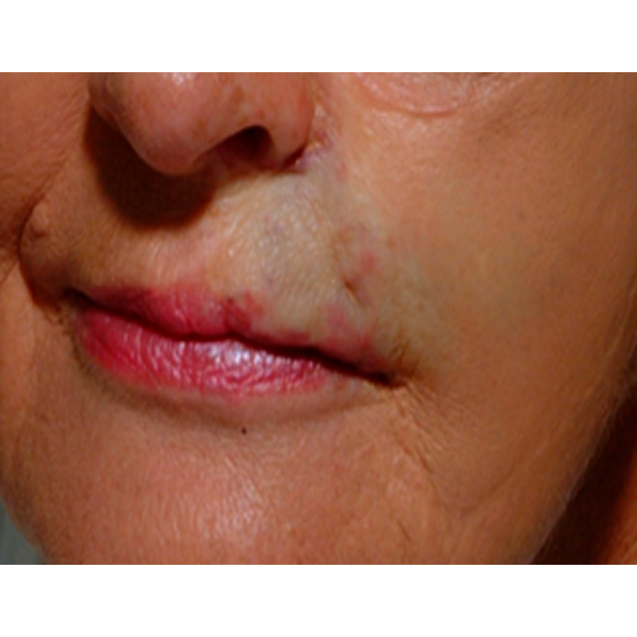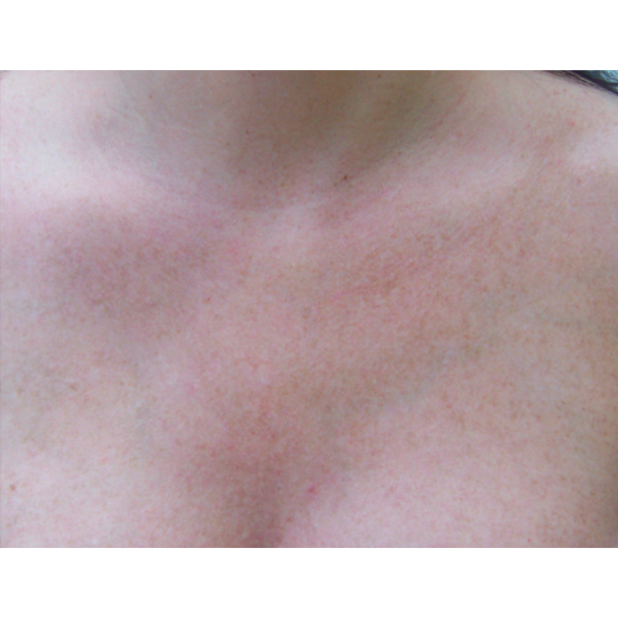 - Дифузне почервоніння та судинні ураження наобличчі