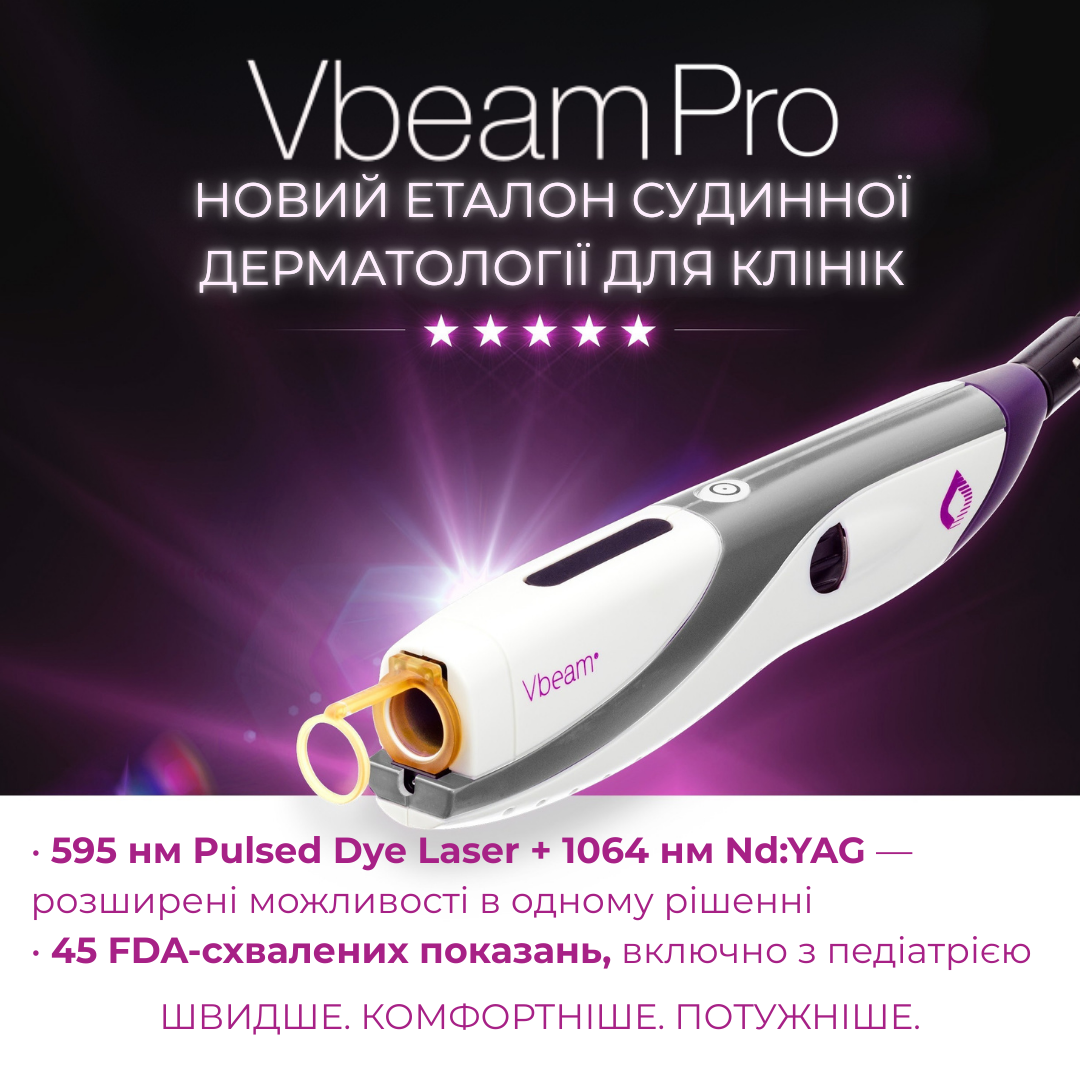 Система Vbeam Pro 1064 нм (неодимовий лазер) має 23 додаткові показання, схвалені FDA, в тому числі оброблення більших і глибших судин і процедури на темних фототипах шкіри.