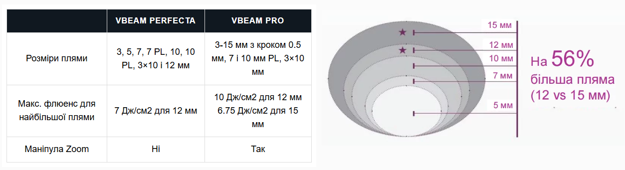 - Пляма 15 мм пришвидшує процедуру за рахунок зменшення кількості імпульсів і покращує її комфортність для пацієнта.