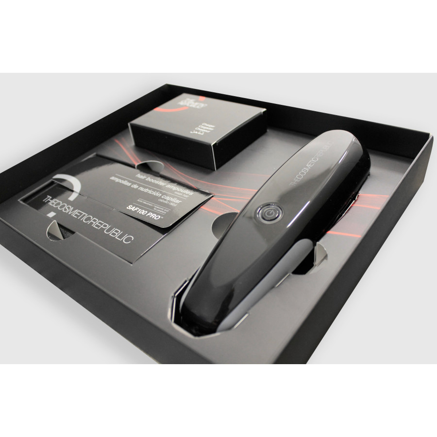 - Одна коробка Hair Booster Ampoules SAF100 PRO™ з 10 ампулами (на перші 3 тижні лазерного лікування).