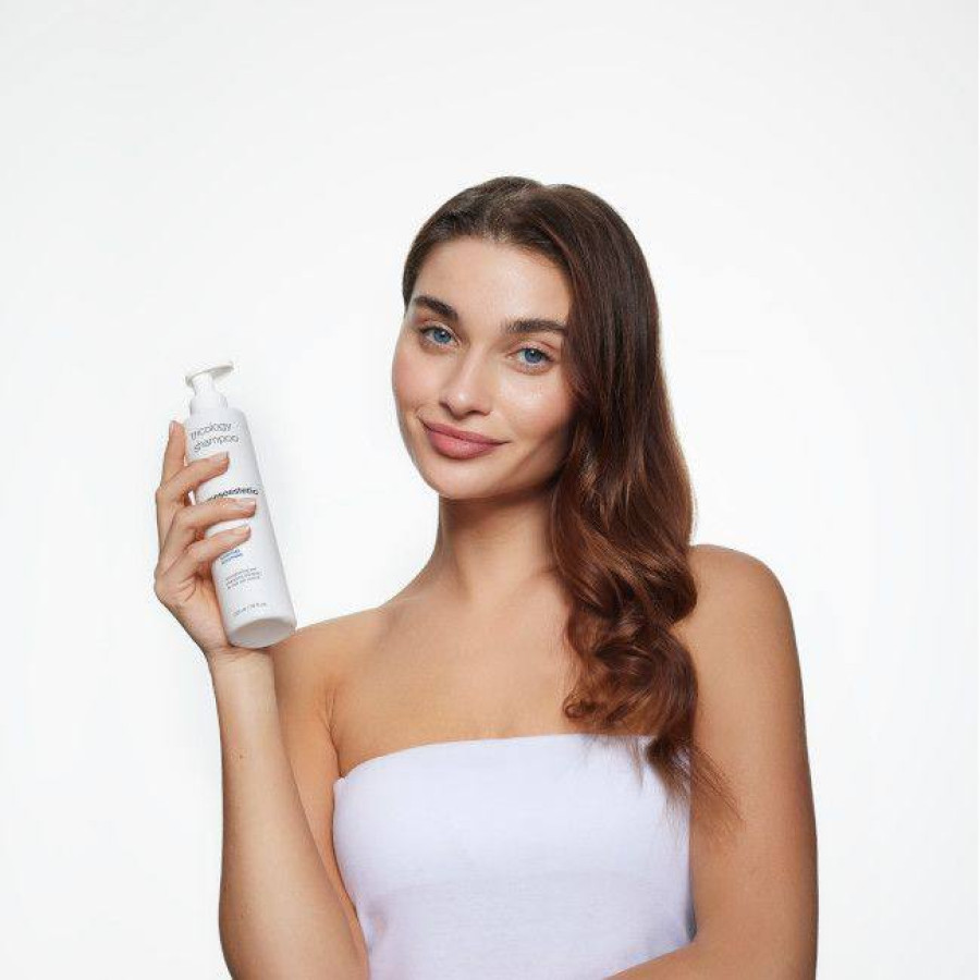 - Нанесіть шампунь tricology на вологу шкіру голови, ніжно масажуючи шкіру, і залиште на 2-3 хвилини. Ретельно промити водою.