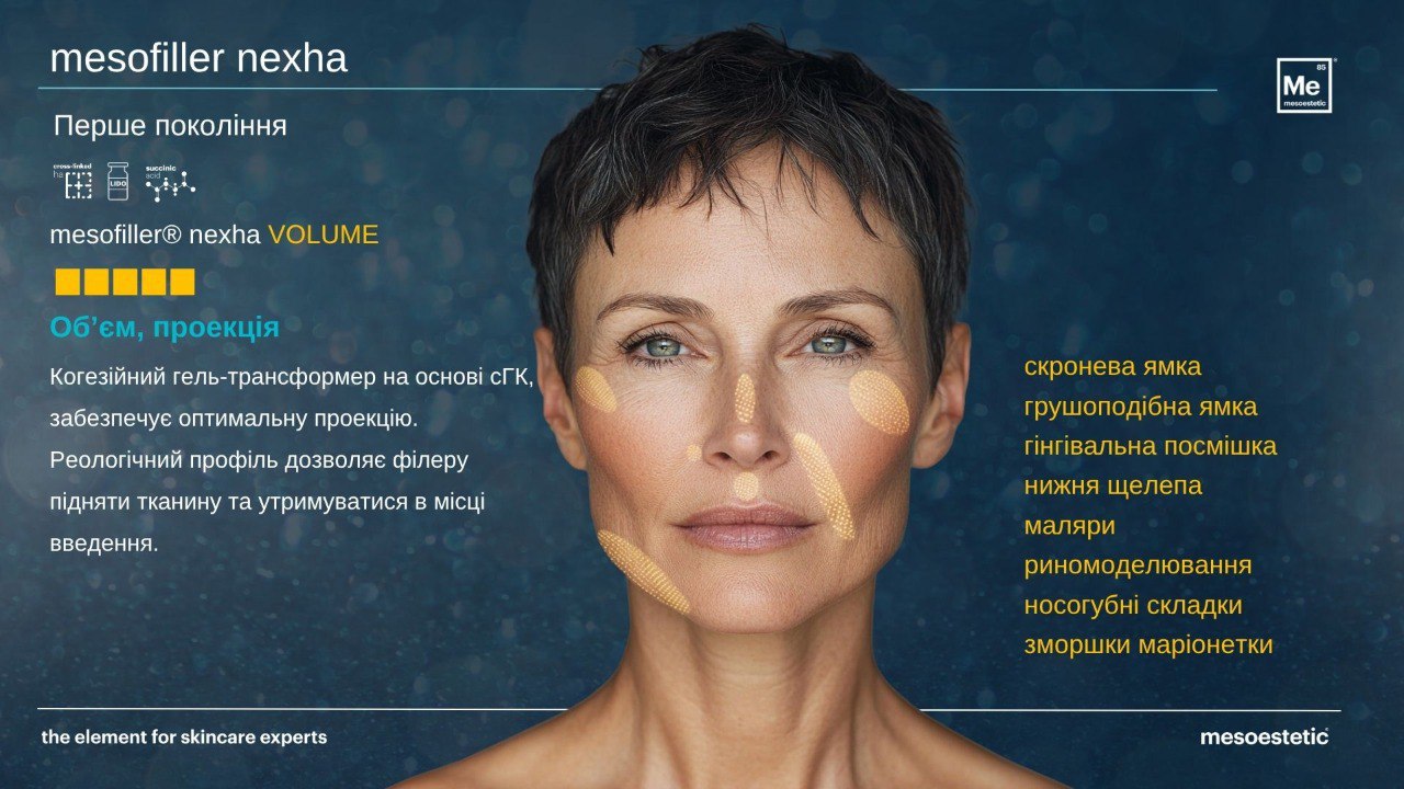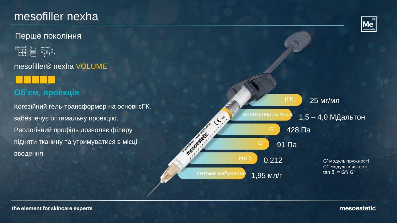 Гель ін’єкційний на основі гіалуронової кислоти стерильний Mesofiller nexha volume / MESOFILLER NEXHA VOLUME 25MG/ML NEEDLE TSK 1ML