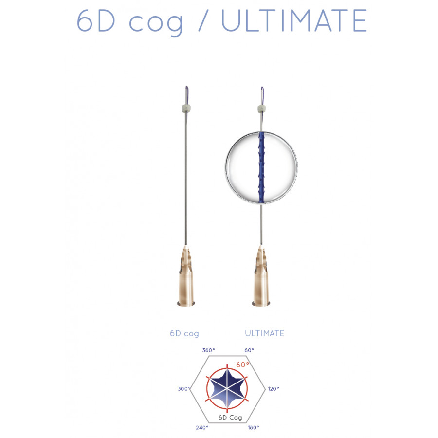 Ultimate – одні з найбільш сучасних та інноваційних ниток – мезонитки Cog 6D із засічками. По діаметру нитки розташовані насічки через кожні 60 градусів, у розрізі видно саме 6 засічок. Це вдвічі більше, ніж у звичайних ниток COG. Завдяки цьому нитки міцніше утримують каркас впродовж тривалого періоду часу. Засічки мають різноспрямоване розташування, що створює більший опір при постановці нитки.