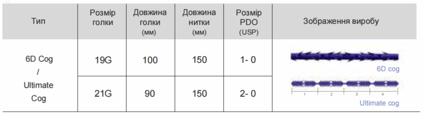 Міцна 6D-нитка з різноспрямованими насічками-зубцями, розташованими по спіралі. Насічки нанесені з шести боків нитки, створюючи 6D-конфігурацію в діаметральній проекції. Має більше, ніж в інших типів COG-ниток, число зубців, що дозволяє максимально щільно зчіплювати нитку з тканиною. Це дає рівномірний і вражений ефект при проведенні процедури, а також зменшує ризик розриву нитки у випадку сильного натягу.