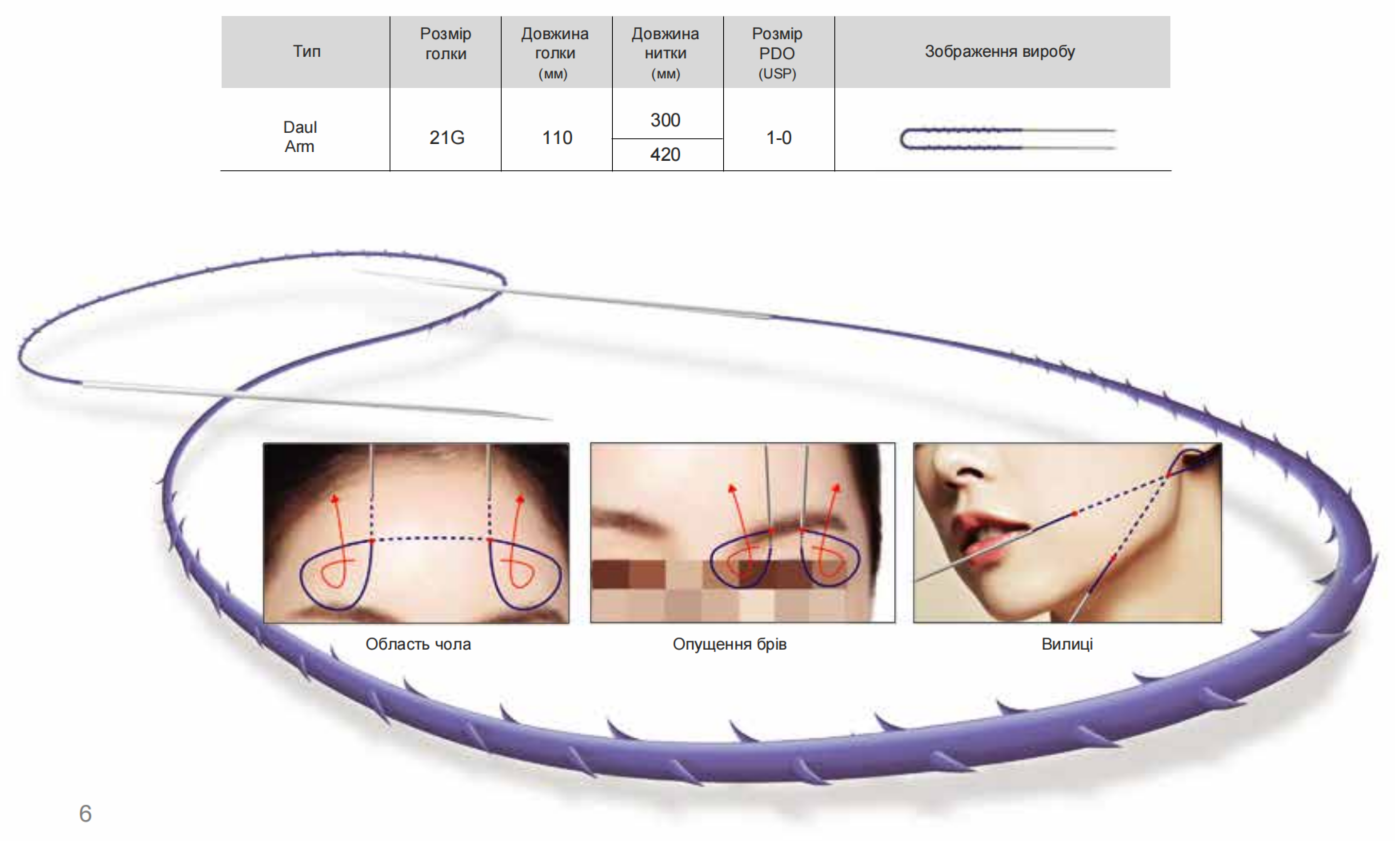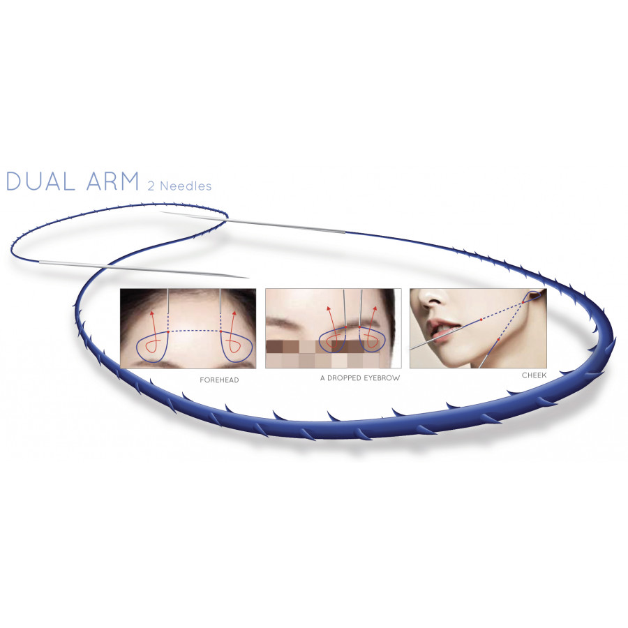 Dual Arm використовує зубчасті нитки із двома голками, прикріпленими до кінця кожної нитки, і часто використовується в області чола, опущених брів, щік тощо.