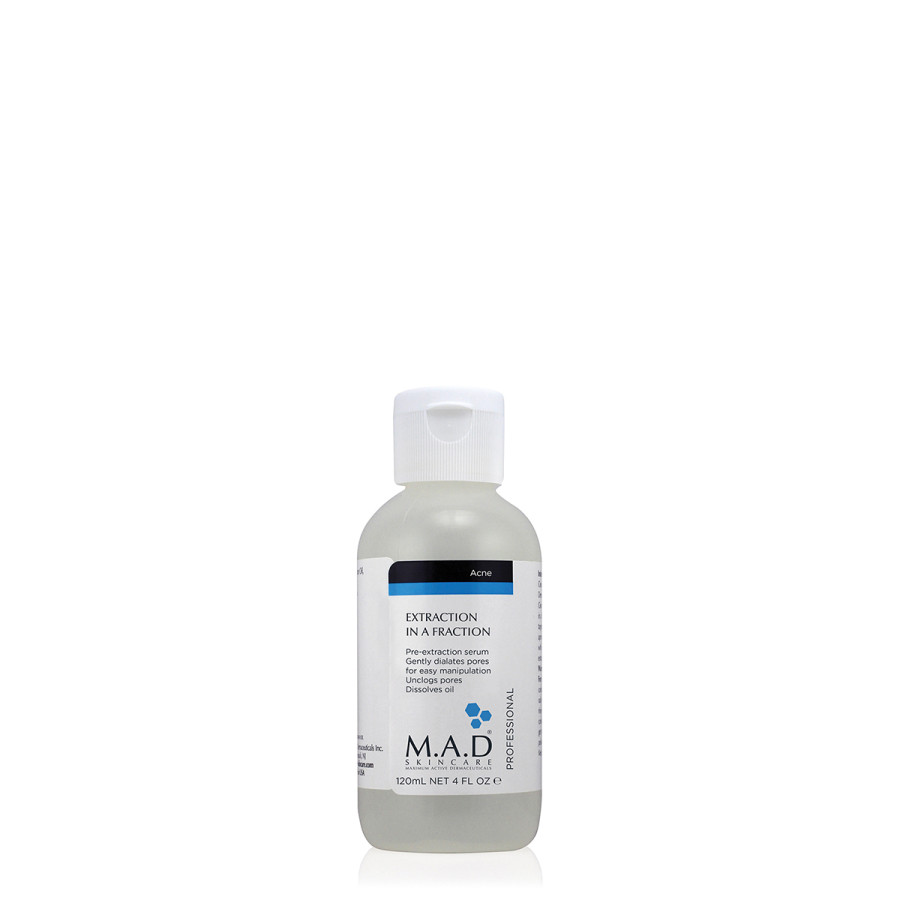 Очистіть обличчя за допомогою відповідного засобу для очищення M.A. Dermaceuticals. Обережно висушіть. Нанесіть Extraction in a Fraction за допомогою ватного диска або кисті на цільову ділянку. Залиште приблизно на 10 хвилин. Змийте водою та виконайте звичайний процес екстракції.